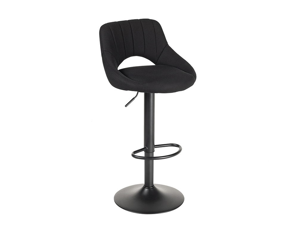 Taburete alto rocada con asiento y respaldo bajo tapizado tela ignifuga base metalica acero color negro
