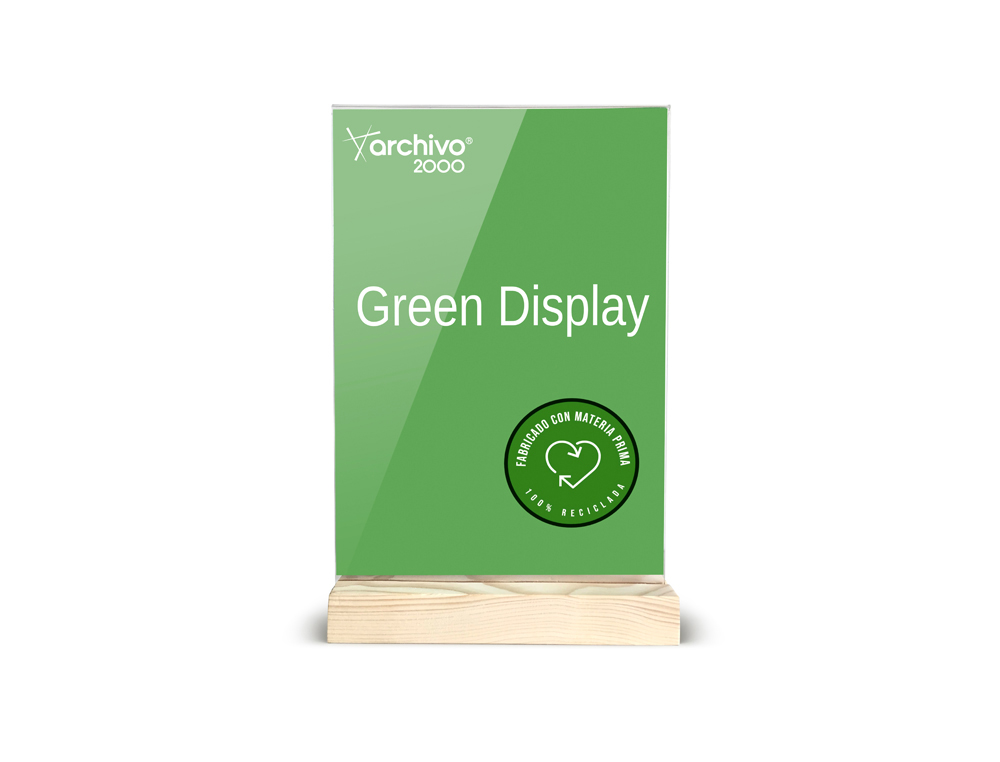 Este expositor destaca no solo por su diseño práctico y robusto, sino también por su compromiso medioambiental, lo que lo convierte en una opción responsable para cualquier espacio donde se requiera mostrar información de forma clara y atractiva.